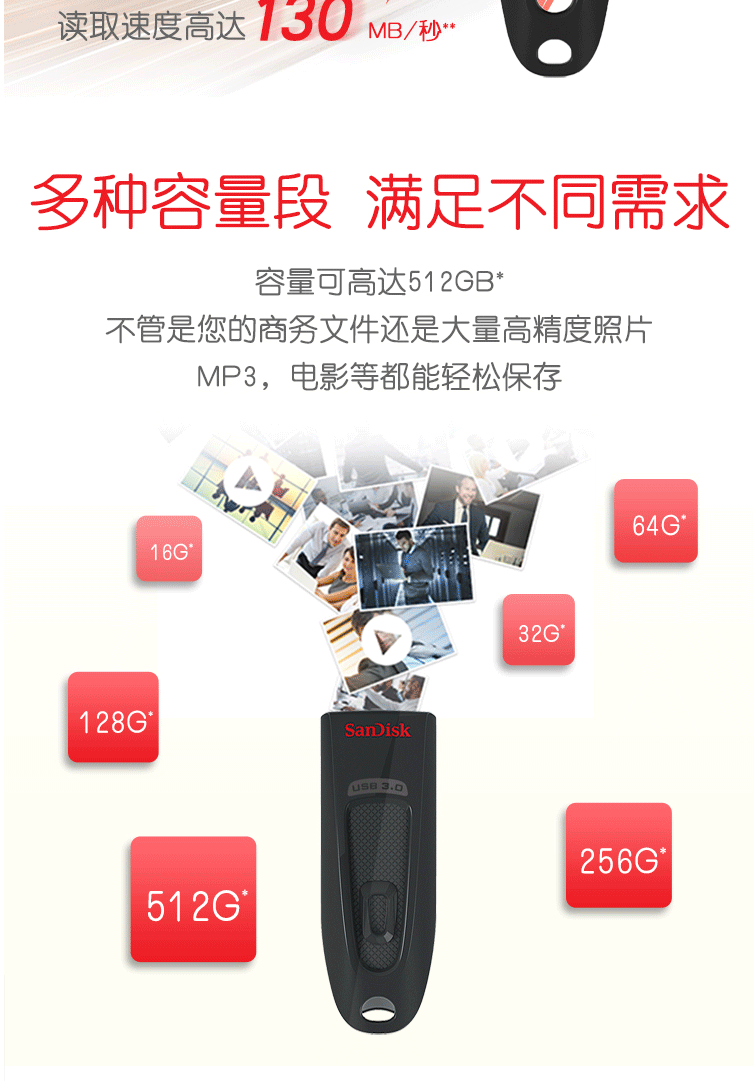 商品名称:闪迪(SanDisk)256GB USB3.0 U盘 CZ48至尊高速 黑色 读速100MB/s