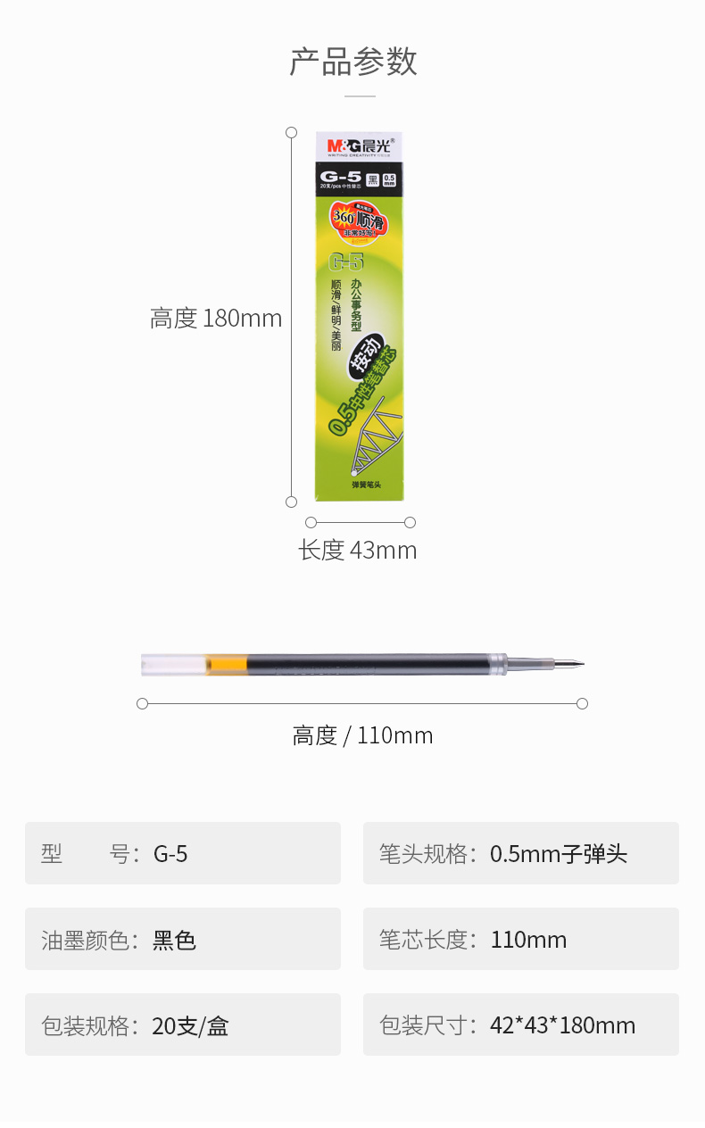 商品名称:晨光中性替芯G-5A03黑0.5 20支/盒