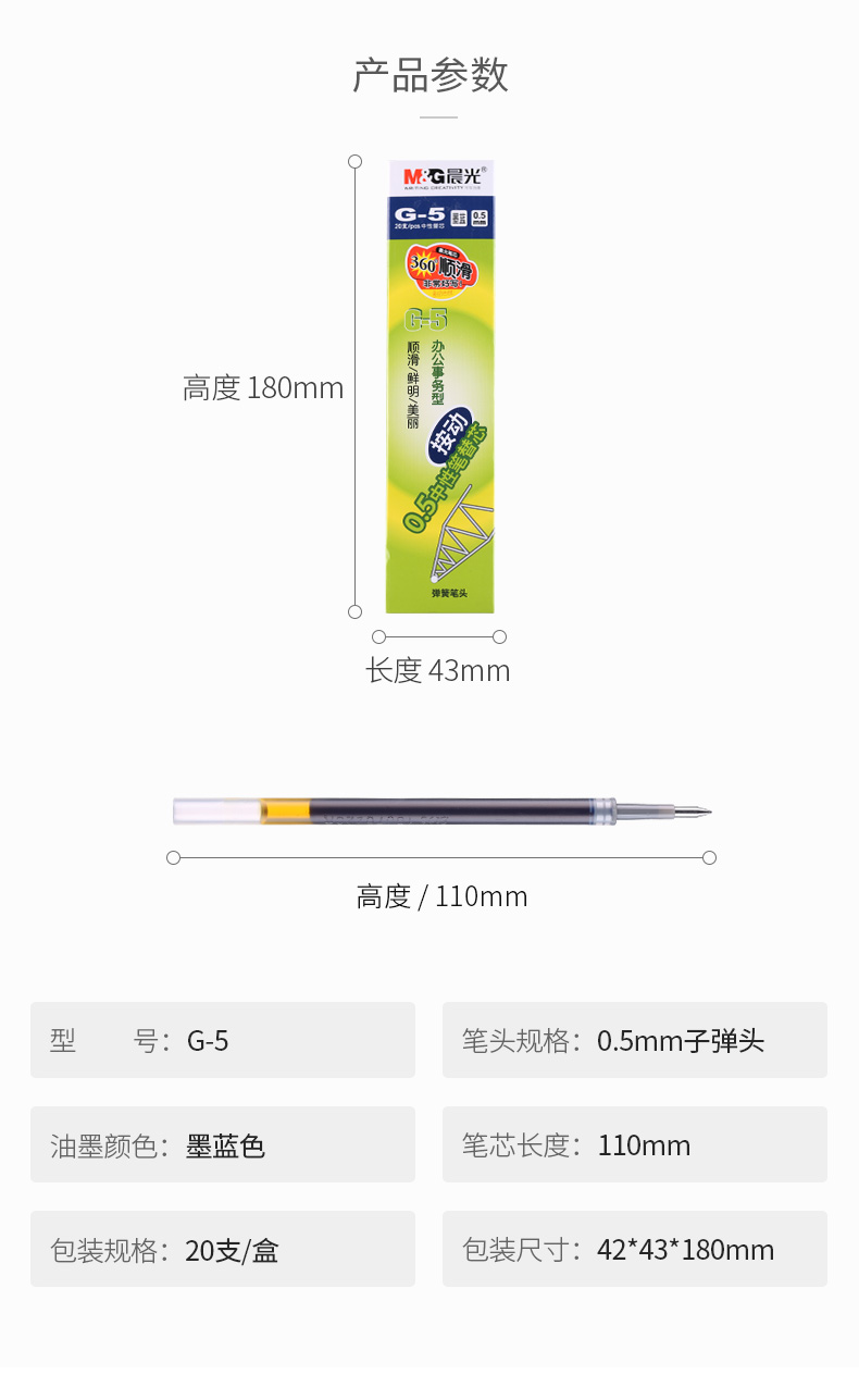 商品名称:晨光中性替芯G-5墨蓝0.5AGR67T02 20支/盒