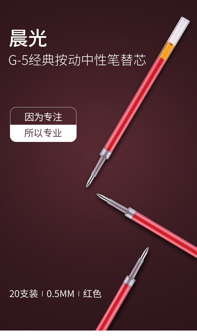 商品名称:晨光中性替芯G-5红0.5 AGR67T02 20支/盒