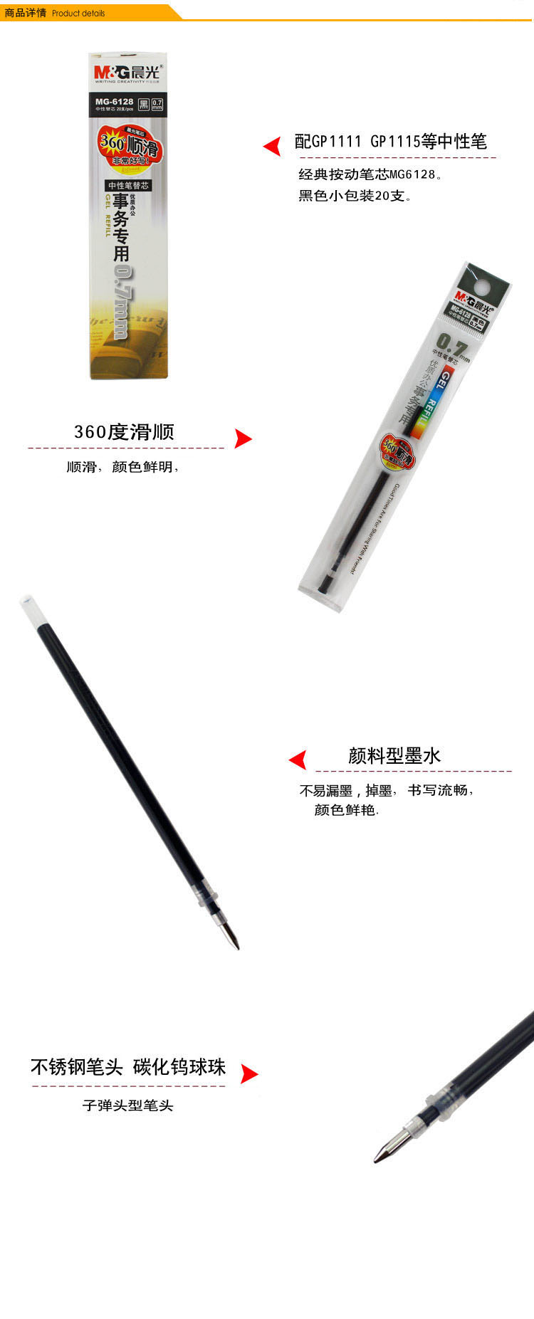 商品名称:晨光最优中性替芯MG6128黑0.7 20支