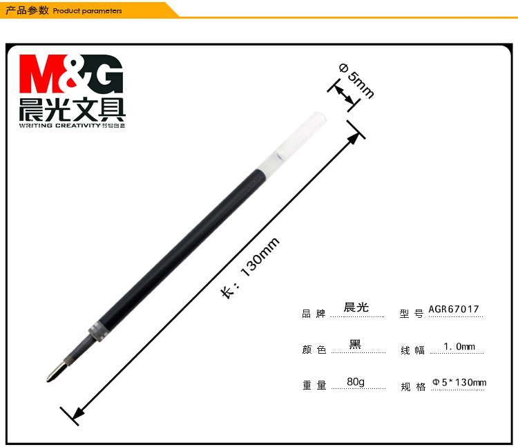 商品名称:晨光中性替芯大笔画AGR67017黑1.0 20支/盒