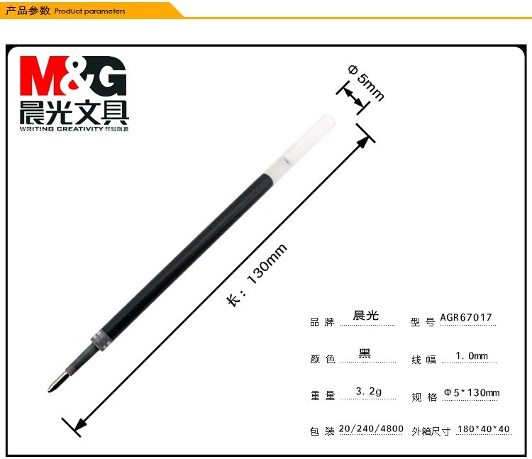 商品名称:晨光中性替芯大笔画AGR67017蓝1.0 20支/盒