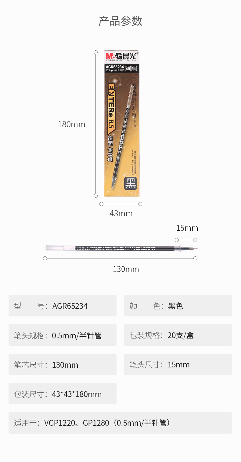 商品名称:晨光中性替芯速腾AGR65234黑0.5 20支/盒