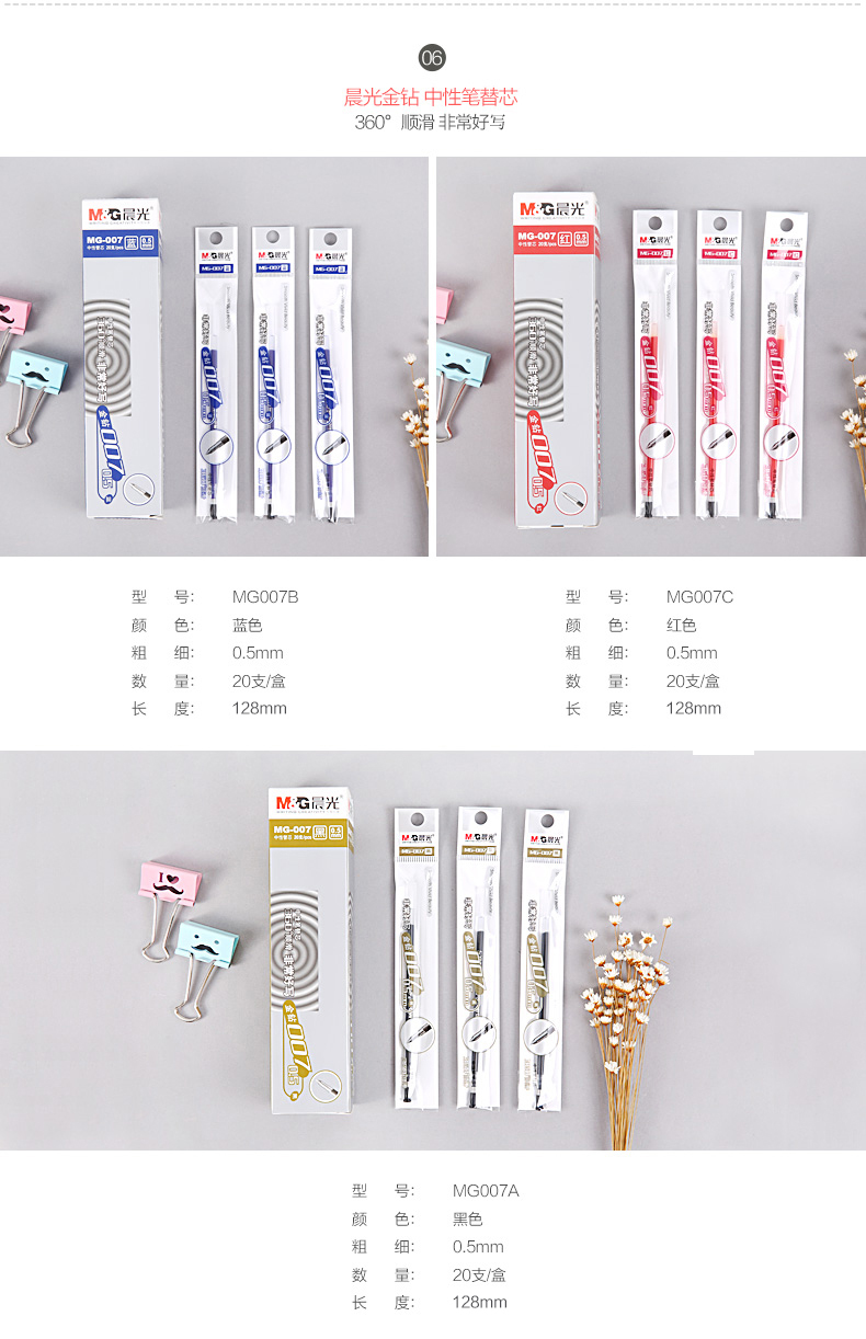 商品名称:晨光钻石中性替芯MG007蓝0.5 20支/盒