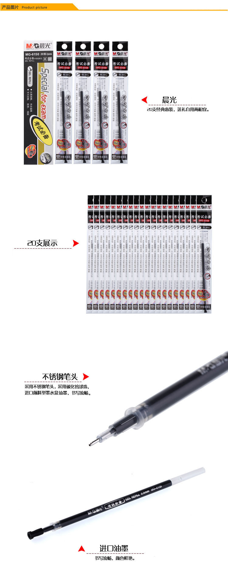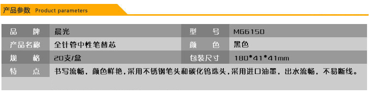 商品名称:晨光中性替芯考试必备针管MG6150黑0.5 20支/盒