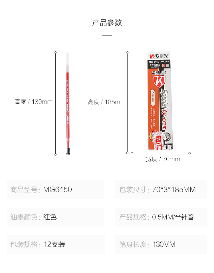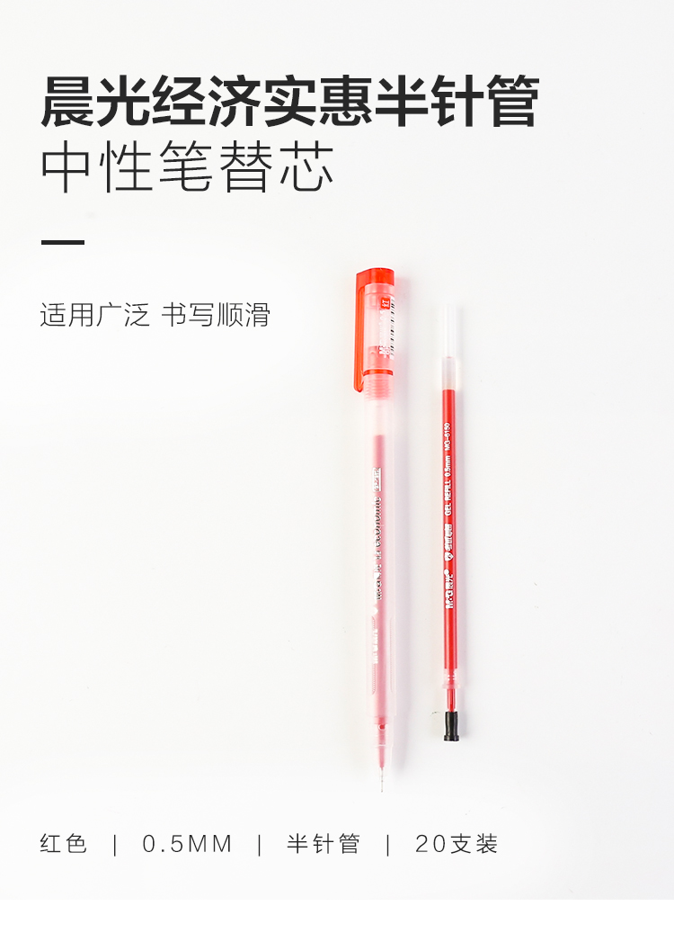 商品名称:晨光中性替芯考试必备针管MG6150红0.5 20支/盒