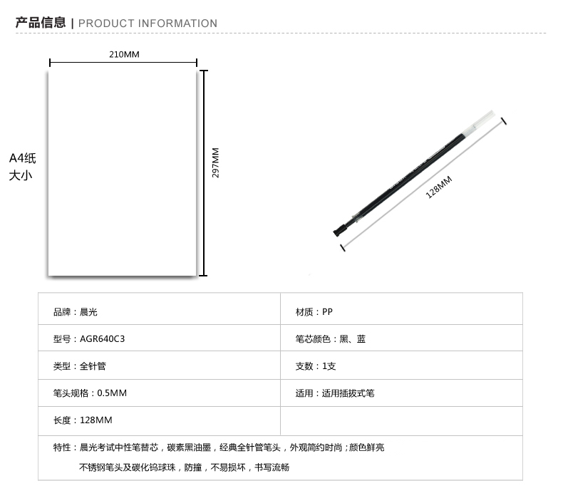 商品名称:晨光中性替芯考试万岁AGR640C3黑0.5 20支/盒