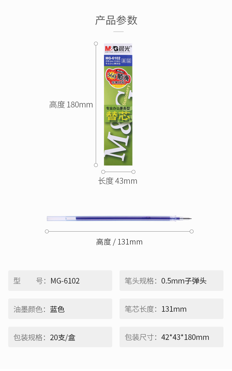 商品名称:晨光中性替芯MG6102蓝0.5 AGR67005 20支/盒
