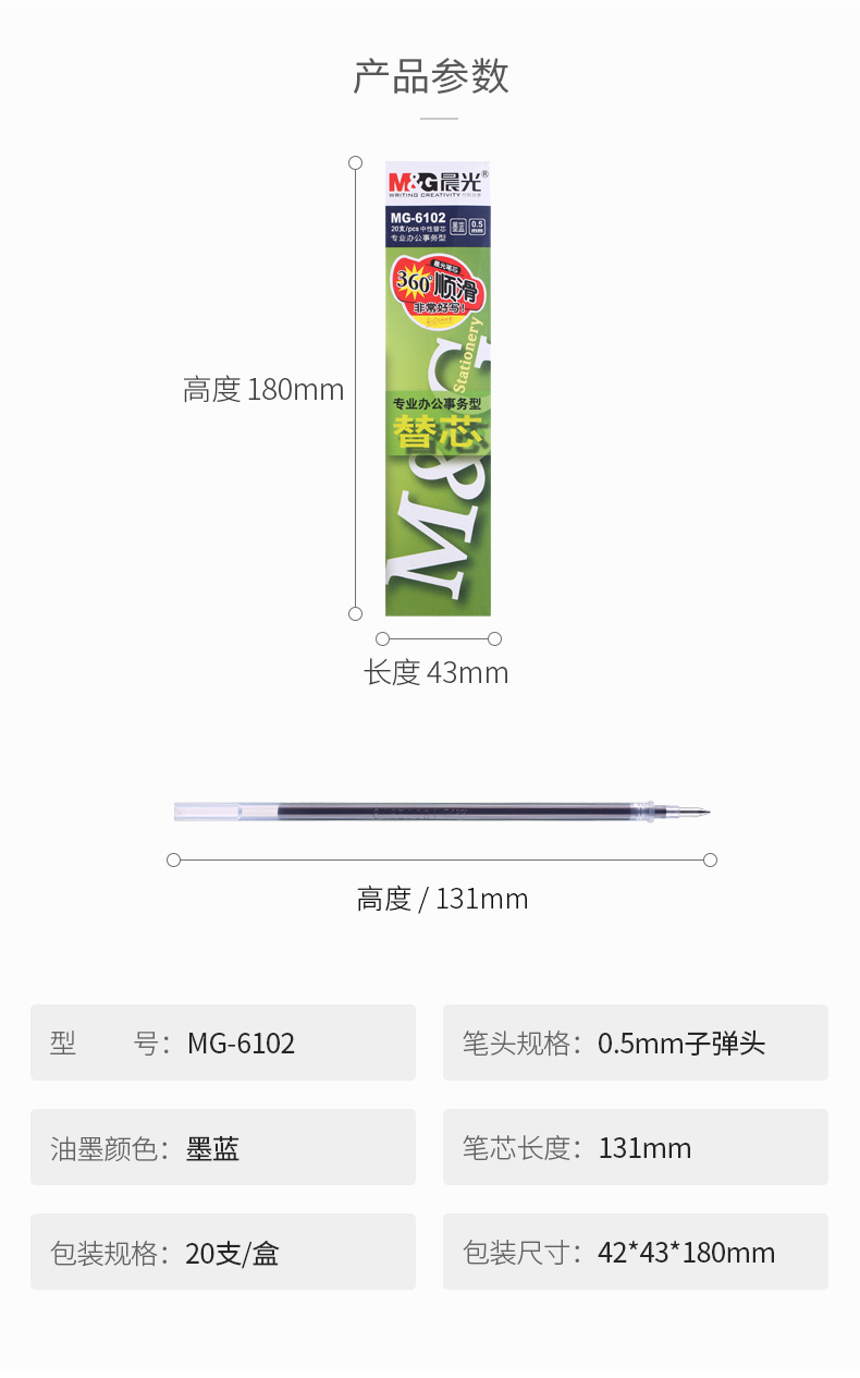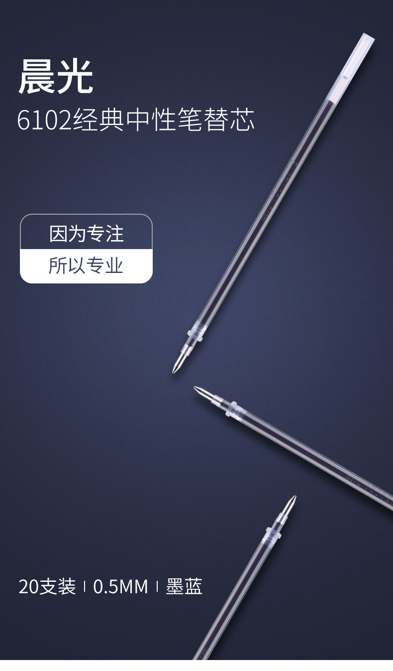 商品名称:晨光中性替芯MG6102墨蓝0.5 AGR67005 20支/盒