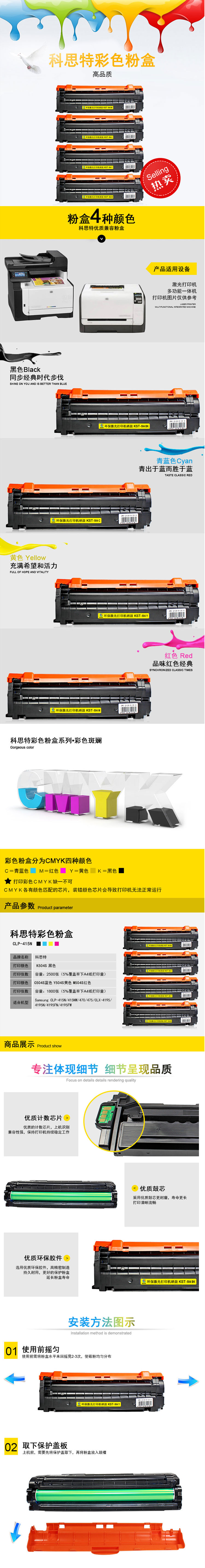 适用机型:Samsung CLP-415N/415NW/470/475 Samsung CLX-4195/4195N/4195FN/4195FW Samsung SL-C1810W/1960FW