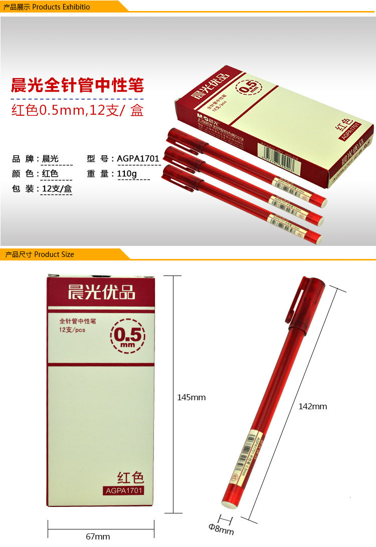商品名称:晨光中性笔优品AGPA1701红0.5 12支/盒