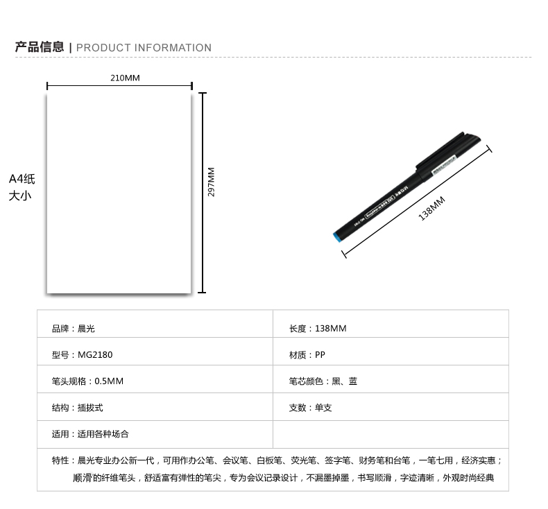 商品名称:晨光会议笔MG2180蓝 12支/盒