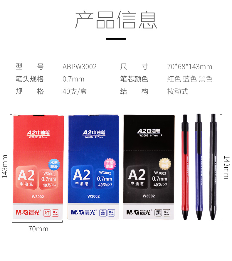 商品名称:晨光水感顺滑中油圆珠笔ABPW3002蓝0.7 40支/盒