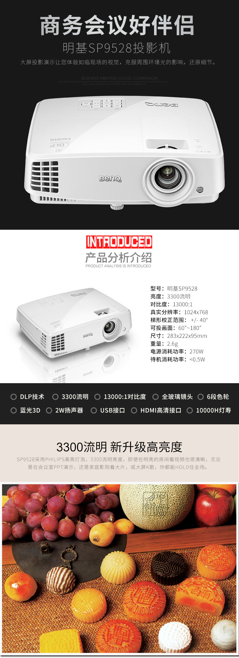 投影 明基(BenQ) SP9528 商务投影仪(高清HDMI )3500流明 官方标配