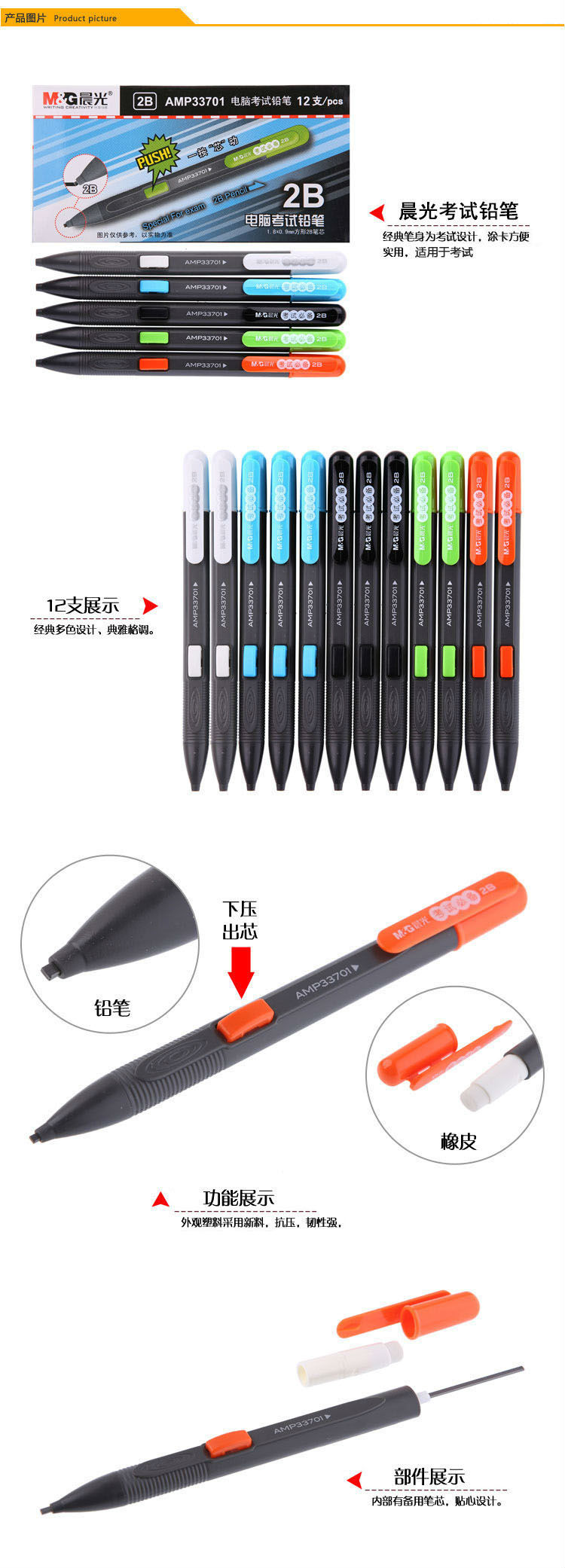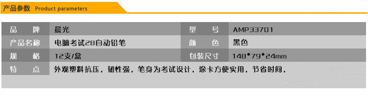 商品名称:晨光自动铅笔电脑考试AMP33701黑2B 12支/盒
