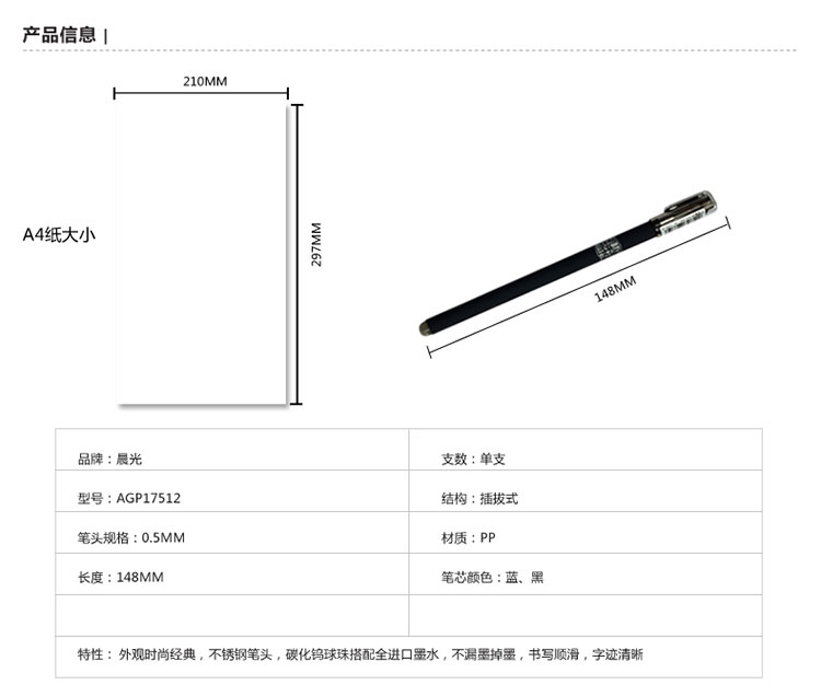 书写粗细:0.5mm