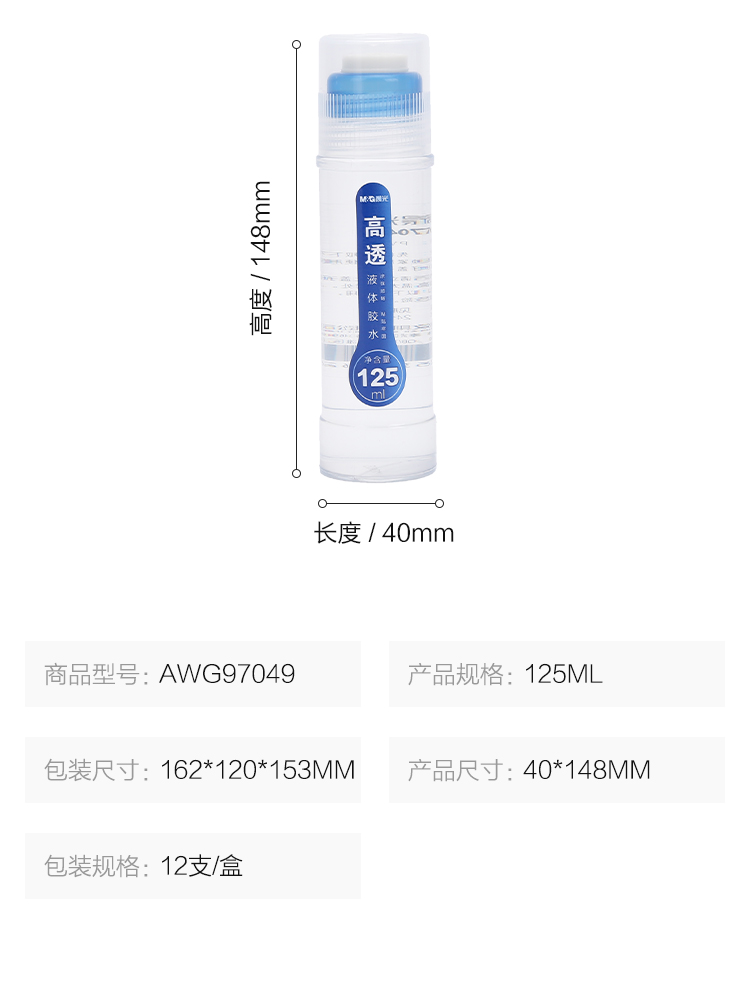 商品名称:晨光液体胶高透125ml*12 AWG97049