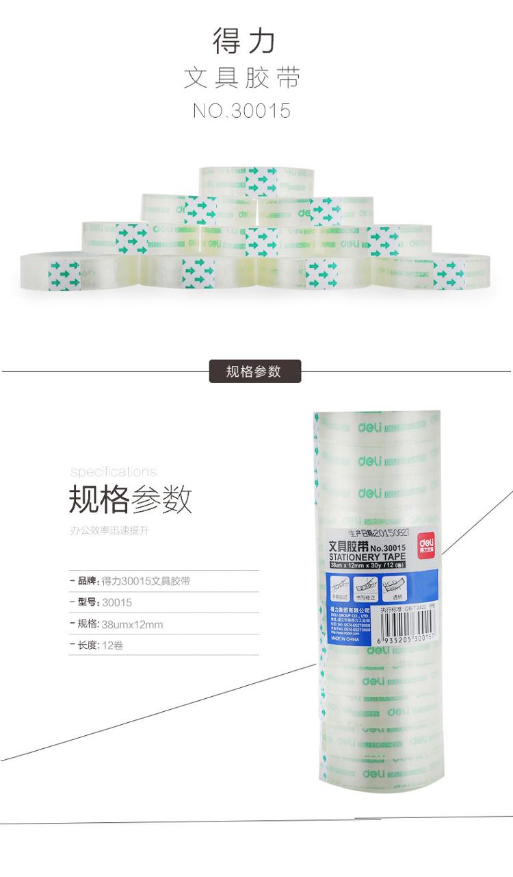 商品名称:得力(deli) 30015文具胶带/小胶带 12mm*30y(27.4m/卷)12卷/筒 办公用品 (单位:筒)