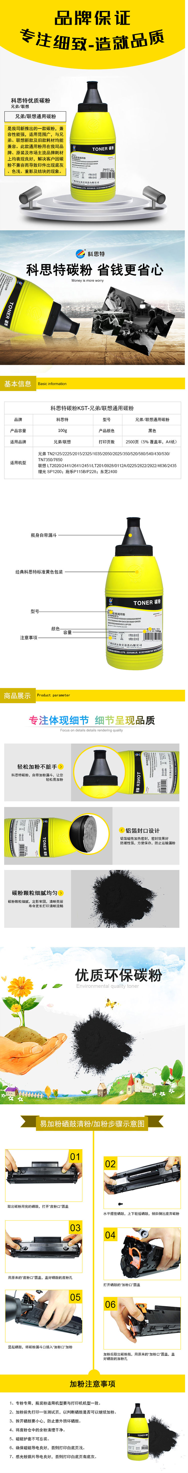 商品名称:科思特 兄弟通用粉 (100G) BK 适用兄弟TN2125/2225/2015/2325/1035/2050联想 LT2020/2441/2641/2451/LT201/0928理光 SP1200施乐P115B/P228东芝2400专业