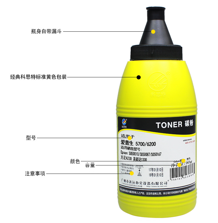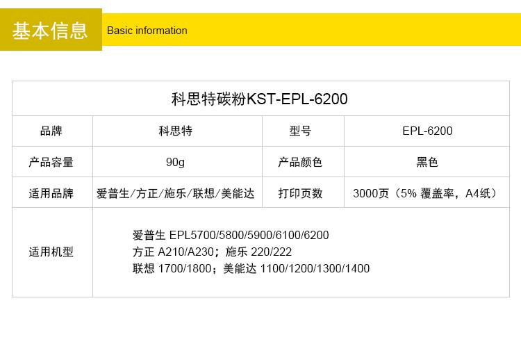 商品名称:科思特 5700/6200(90G) BK 碳粉 适用爱普生 EPL5700/5800/5900/6100/6200 方正A210/A230 施乐220/222 联想 1700/1800 美能达 1100/1200/1300/1400 专