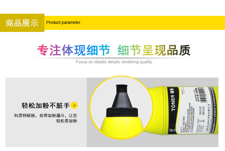适用机型:A4,5%覆盖率,打印量7000,加粉量340G Epson 1220/2180/1610/2120/2020;方正 A231/321/A6100/A6000/A6300;施乐 2050/P181/210/211/202/205/255/355;联想 5500/5600/5700/6000/7500/6300