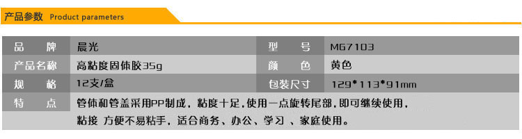 商品名称:晨光35g*12支高粘度固体胶MG7103