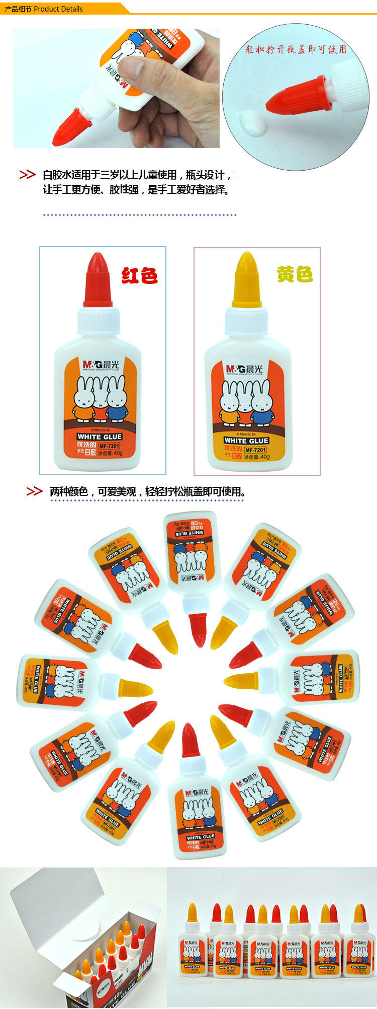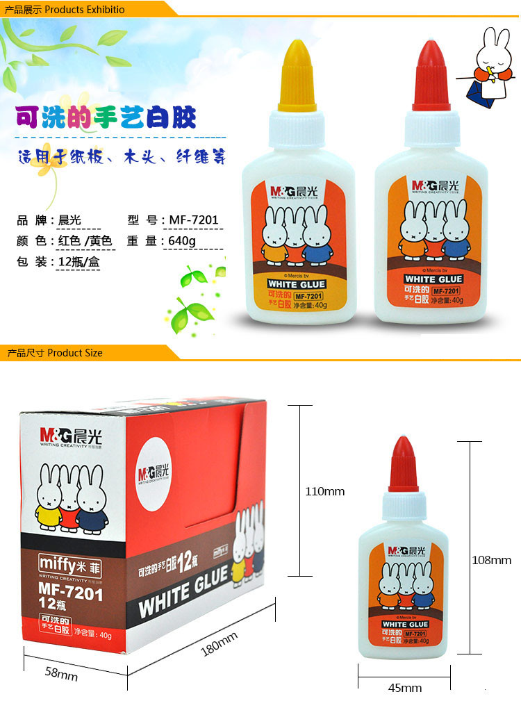 商品名称:晨光40g*12可洗手艺白胶米菲MF7201