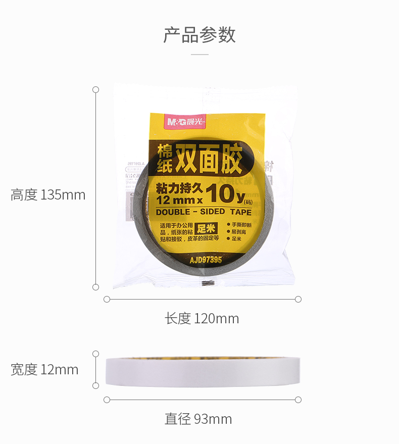 商品名称:晨光双面棉纸胶带12mm*10y(单卷)*24 AJD97395