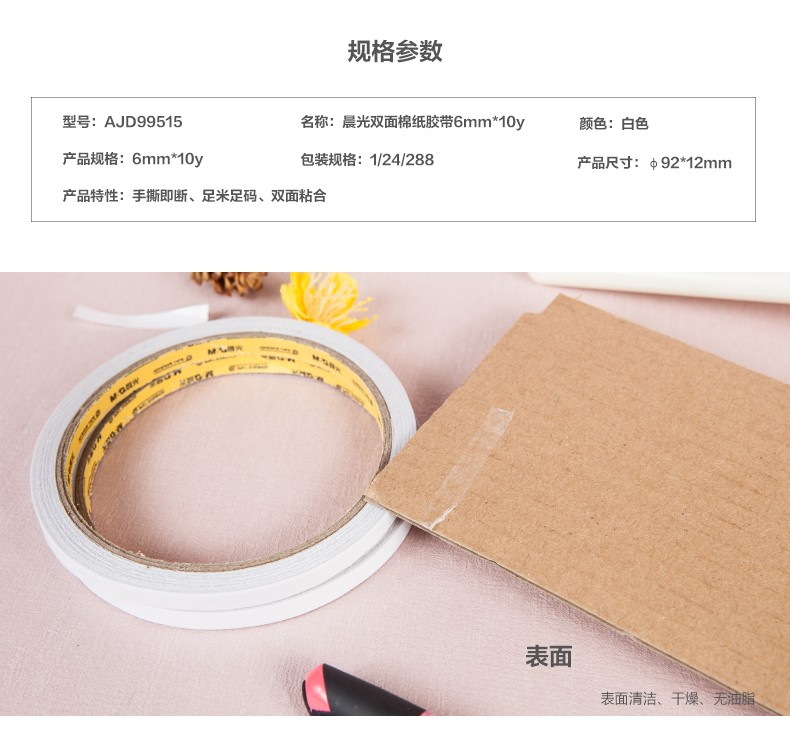 商品名称:晨光双面棉纸胶带6mm*10y(两卷)*24 AJD99515