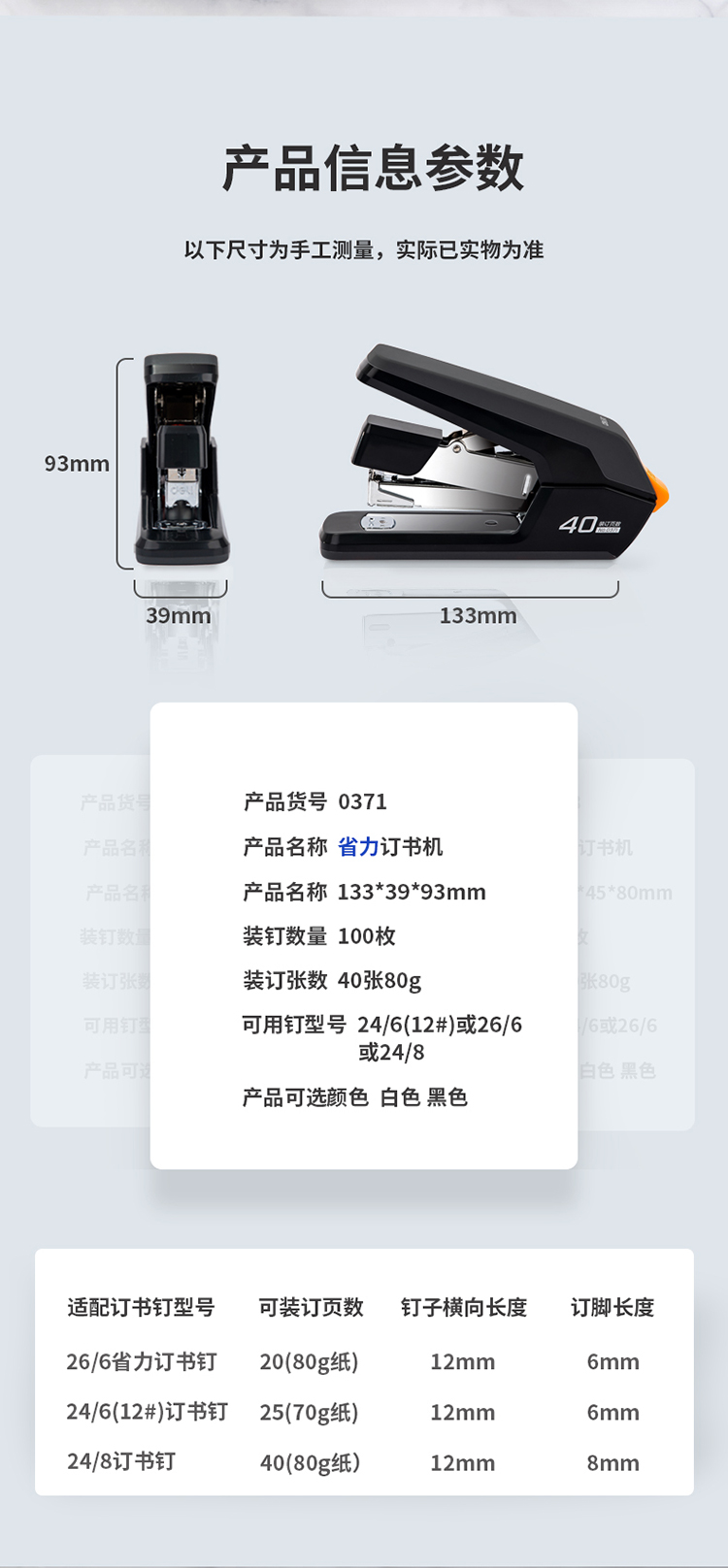 规格:40页省力订书机