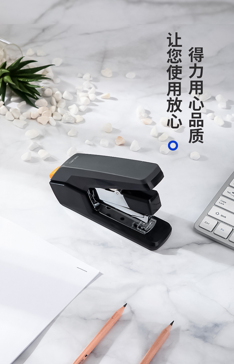 商品名称:得力(deli)省力型订书机 可订40页80g 适配24/6,26/6及24/8订书钉 0371 黑色