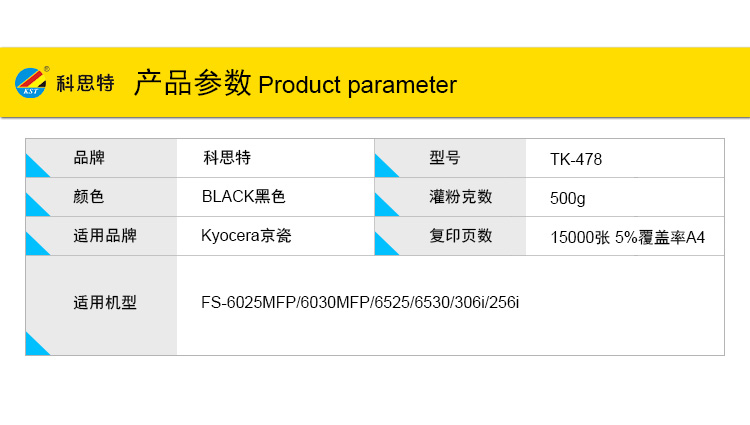 商品名称:科思特 TK478粉盒 适用京瓷 FS-6025MFP/6030MFP/6525/6530/306i/256i 黑色