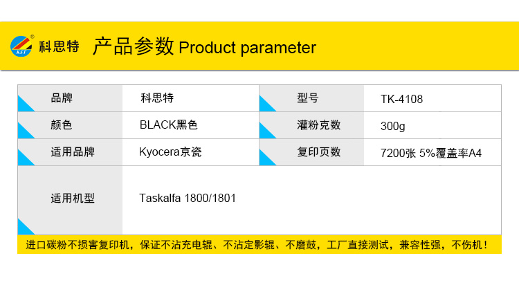 商品名称:科思特 TK4108粉盒 适用京瓷Taskalfa 1800/1801 黑色