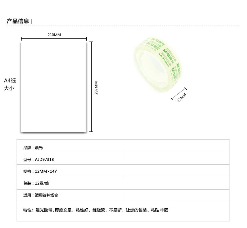 商品名称:晨光文具胶带12mm*14y(12卷)AJD97318