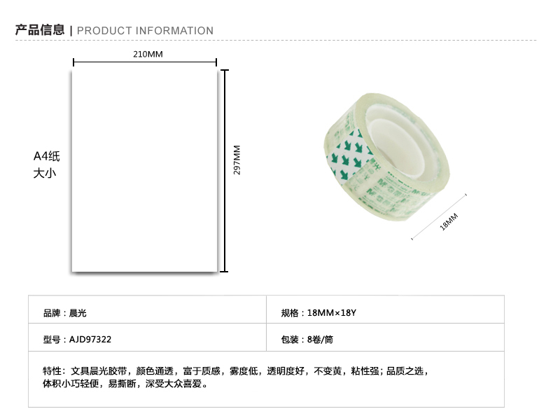 商品名称:晨光文具胶带18mm*18y(8卷)AJD97322