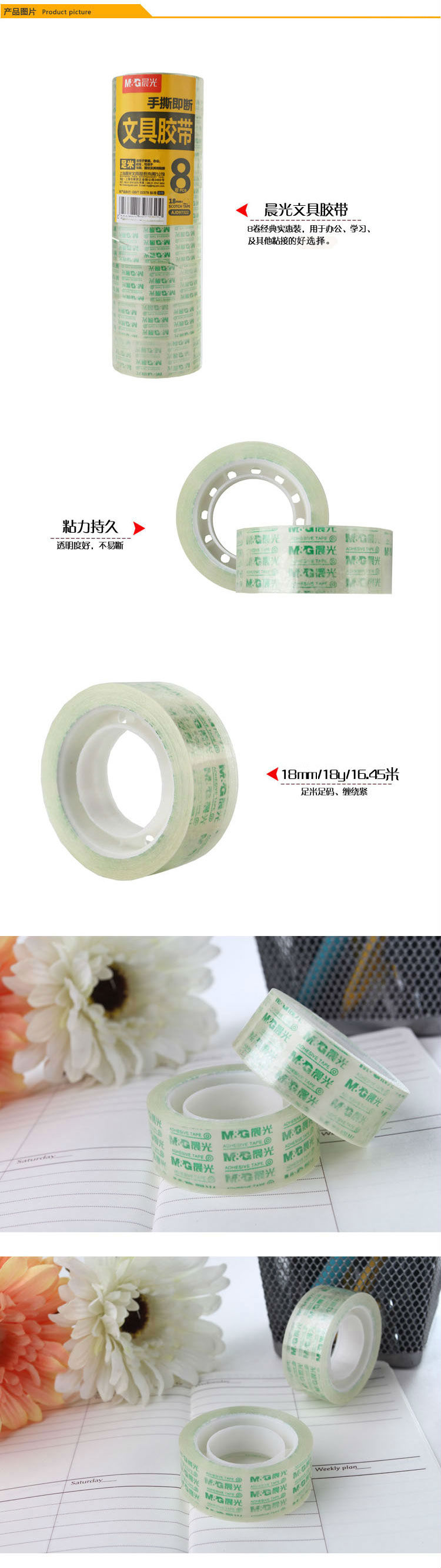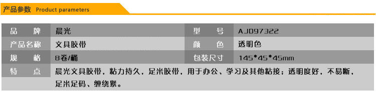 商品名称:晨光文具胶带18mm*30y(8卷)AJD97323