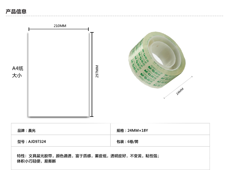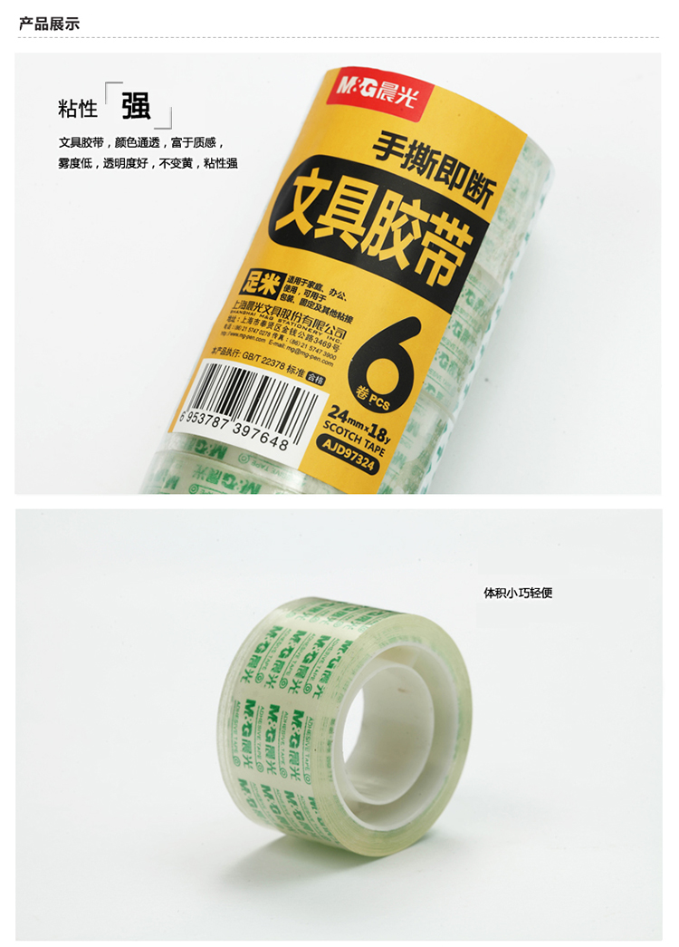 商品名称:晨光文具胶带24mm*18y(6卷)AJD97324