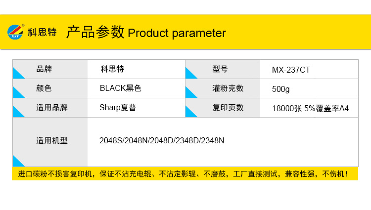 商品名称:科思特 MX-237CT粉盒 适用夏普SF-S201S/201N/S261N 黑色