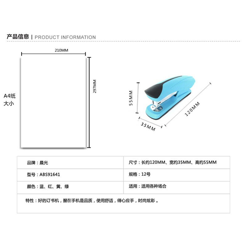 商品名称:晨光12#机订书机炫彩办公ABS91641