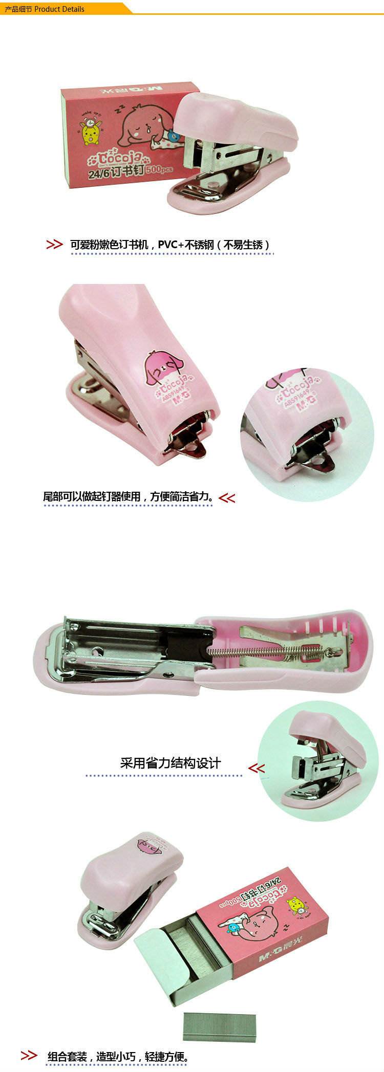商品名称:晨光12#订书机Cocoja卡通套装ABS91649