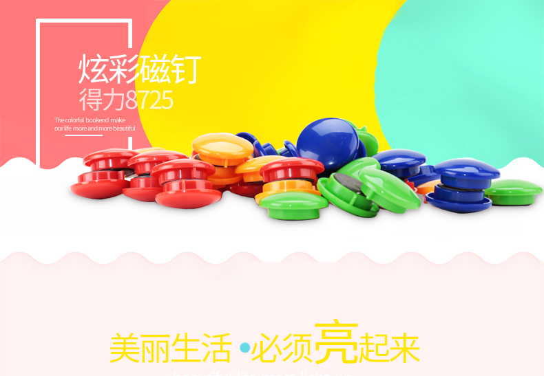 得力 (deli)8725 彩色白板磁钉/吸铁石/磁铁φ30mm 48粒/筒 30mm
