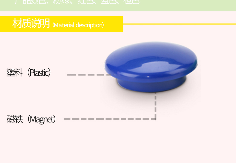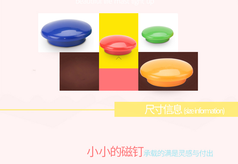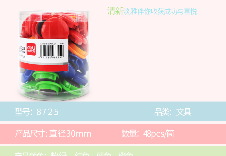 商品名称:得力 (deli)8725 彩色白板磁钉/吸铁石/磁铁φ30mm 48粒/筒 30mm