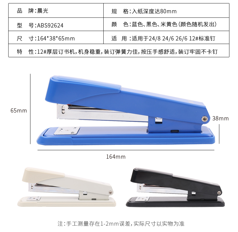 商品名称:晨光厚层12号订书机ABS92624