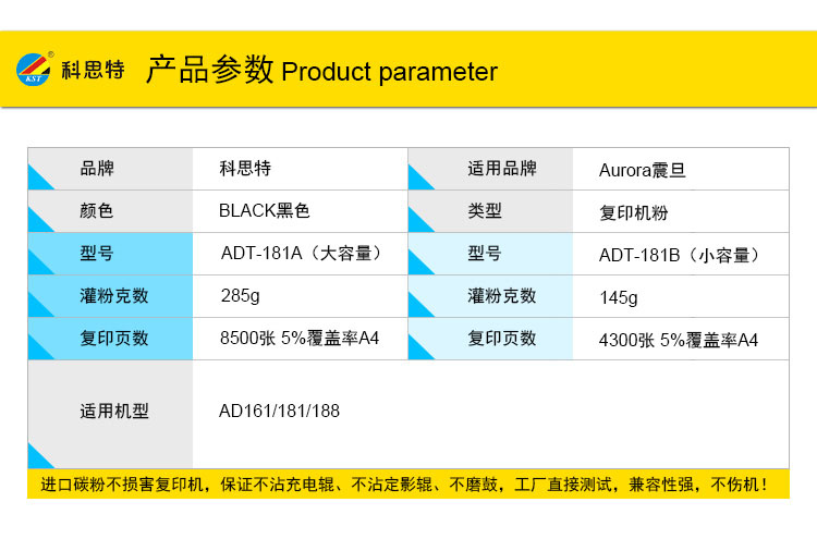商品名称:科思特 ADT-181B/199B粉盒 小容量 适用震旦 AD161/181/188/248/208 黑色
