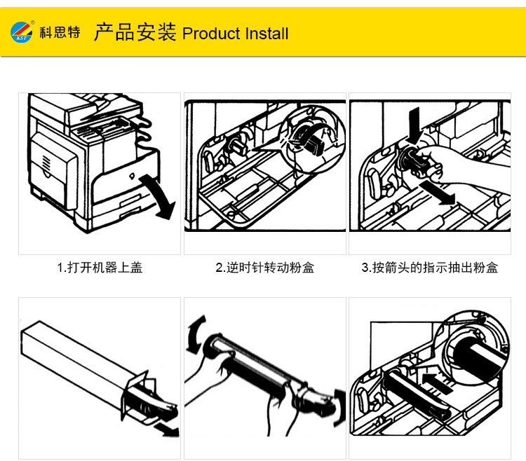 科思特 ADT-181B/199B粉盒 小容量 适用震旦 AD161/181/188/248/208 黑色
