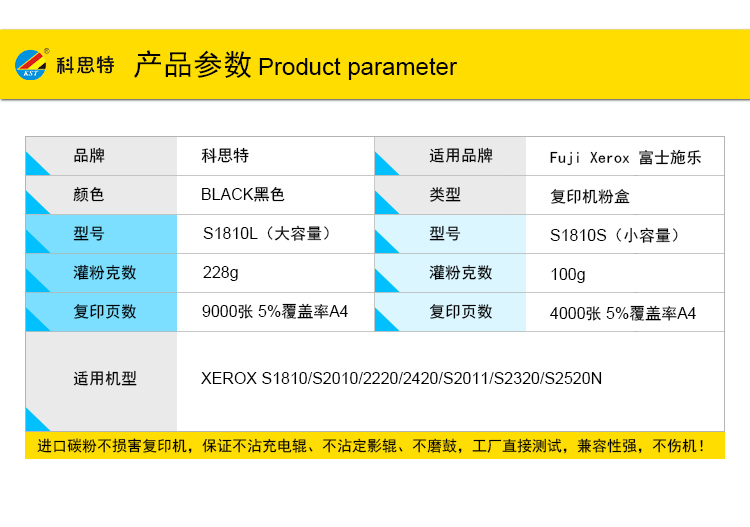 商品名称:科思特 S1810/2011L大容量 粉盒 适用施乐XEROX S1810/S2010/2220/2420/S2011/S2320/S2520N 黑色