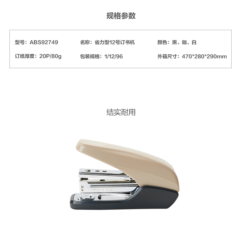 商品名称:晨光省力型12号订书机ABS92749