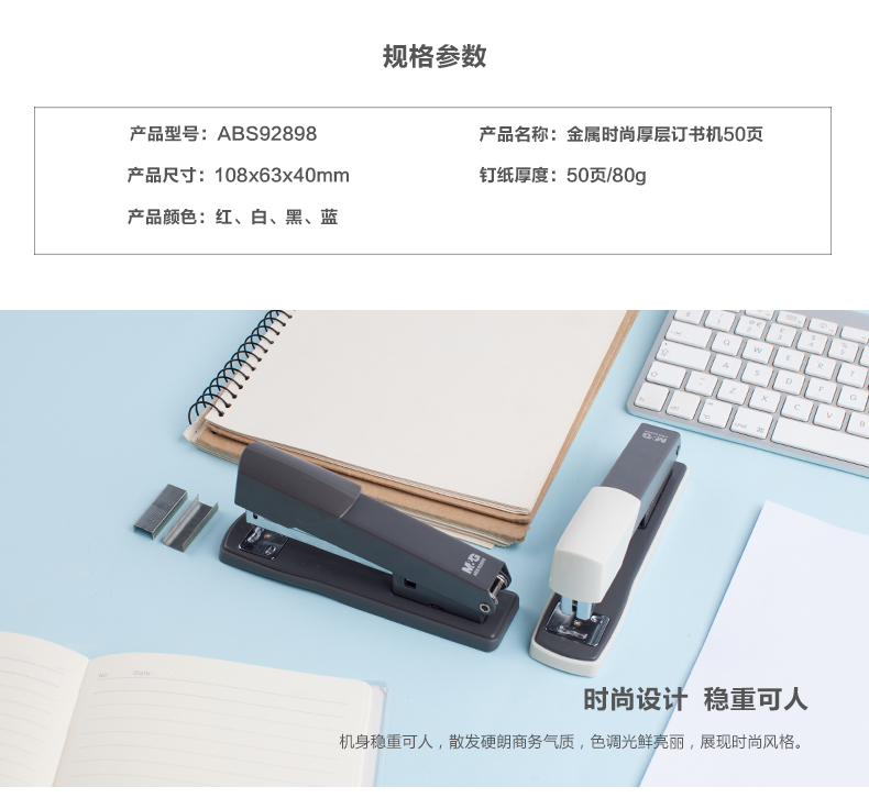 商品名称:晨光金属时尚厚层订书机50页ABS92898