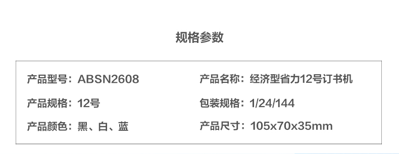 商品名称:晨光经济型省力12号订书机ABSN2608